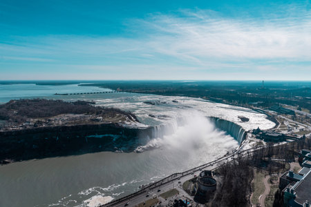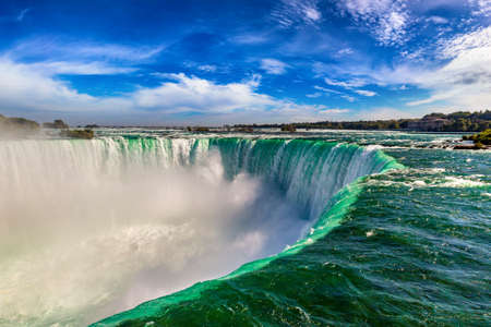 Canadian side view of Niagara Falls, Horseshoe Falls in a sunny day in Niagara Falls, Ontario, Canada
