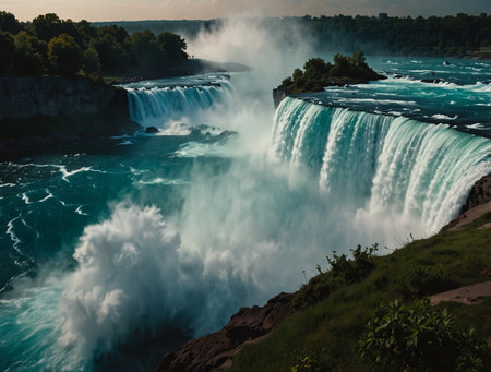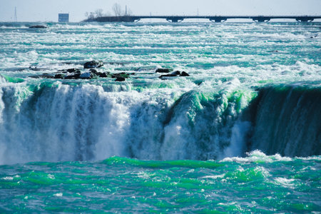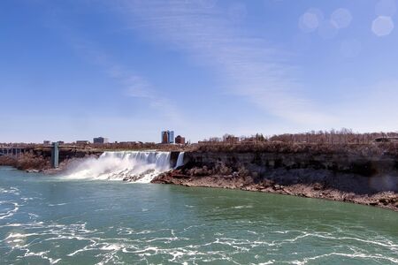 Gorgeous view of Niagara Falls landscape.Waves rumbling against the rocky shore. Beautiful nature backgrounds.
