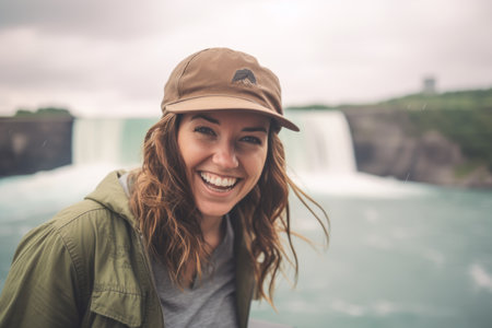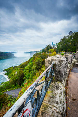 Tourists and waterfall observation deck. Shooting Location: Toronto