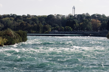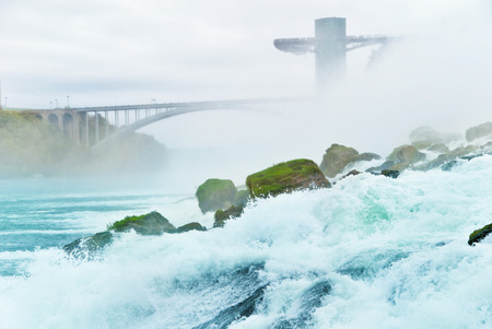 Niagara Falls, water and fog create a sense of mystery.One of the three largest waterfalls in the world, spanning the United States and Canada. 2016.