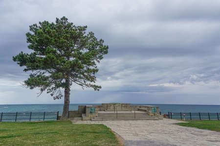 Stone tower at Saint Jean de Luz, France. Cloudy day
