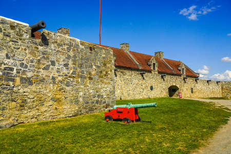 Exterior wall and cannons at the historic Fort Ticonderoga in Upstate New York. Fort Ticonderoga, formerly Fort Carillon, is a large 18th-century star fort built by the French in northern New York