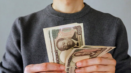 A worn banknote stack hand held bundle money holding cash pile currency transaction finance