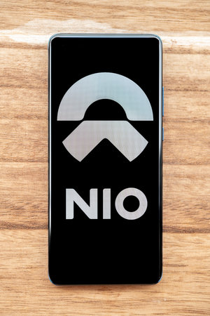 ZHONGSHAN China-November 8,2023:a mobile with NIO at vertical composition.