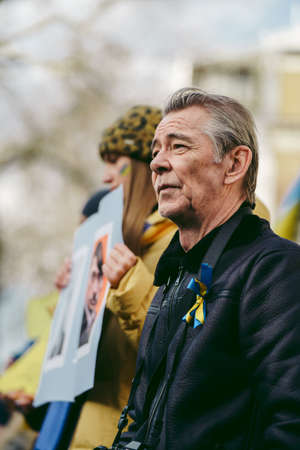 Downing Street, London | UK - 2022.03.12: Ukrainian people protest, thousands gather to demand tougher sanctions on Russia from British Government, EU and USA to stop the war in Ukraine