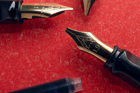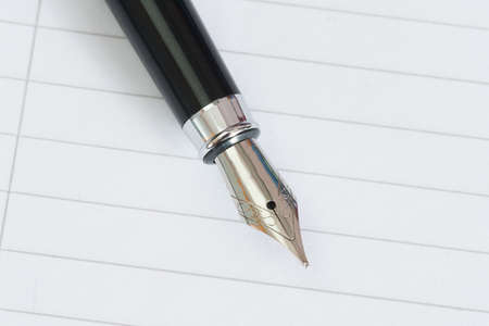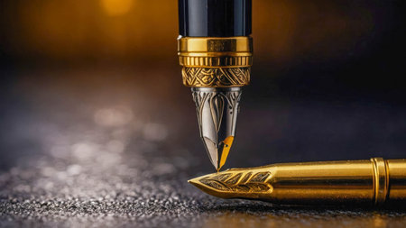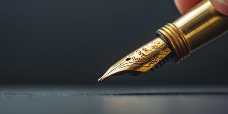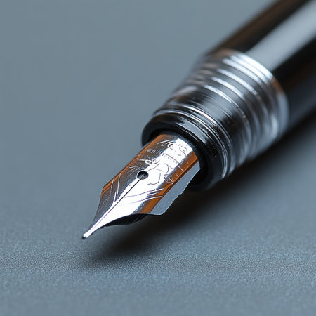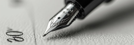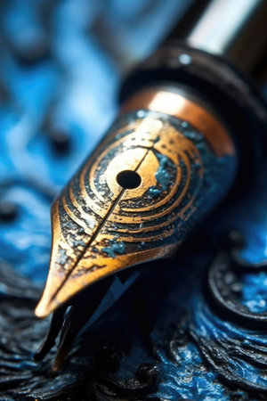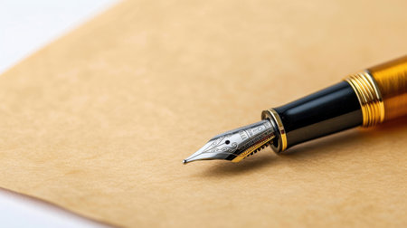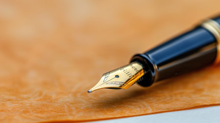 A stunning close-up of an elegant fountain pen poised on vintage paper, showcasing the intricate nib design, perfect for creative writing or artistic endeavors.