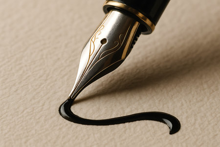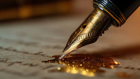 A macro shot of ink flowing from a fountain pen nib onto paper, capturing the beauty of writing