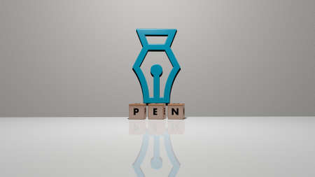 3D illustration of PEN graphics and text made by metallic dice letters for the related meanings of the concept and presentations. background and business