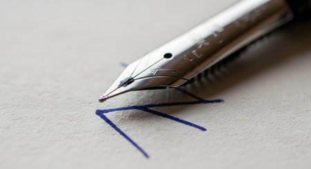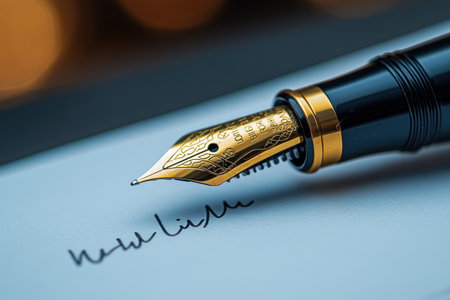 A detailed macro shot of fountain pen tip hovering above handwritten note, showcasing elegance and precision..