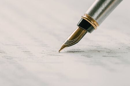 Fountain pen on an ancient handwritten letter. Old story. Retro style.