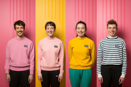 Multicultural smiling teenagers composite mug shots on vibrant peach fuzz background