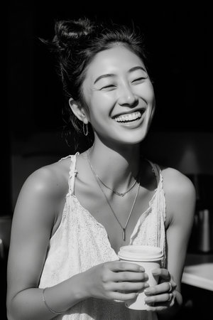 Portrait of a beautiful young Asian woman holding a cup of coffee