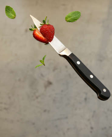 Kitchen knife on a bright blue background. Minimal art