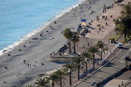 NICE, FRANCE 26 FEBRUARY 2020: Nice Beach and sea