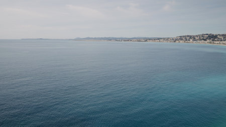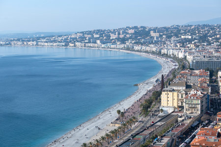 Nice, France - March 15, 2023: Panoramic View Promenade Des Anglais and a coastline in Nice