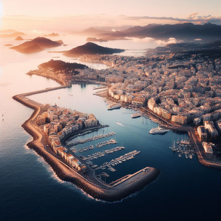 Scenic View of Vibrant Coastal Mediterranean Town Harbor with Yachts and Hillside Backdrop on a Clear Day