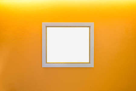 empty picture frame on white wall background with copy space