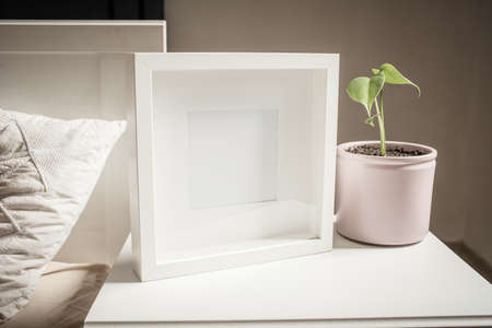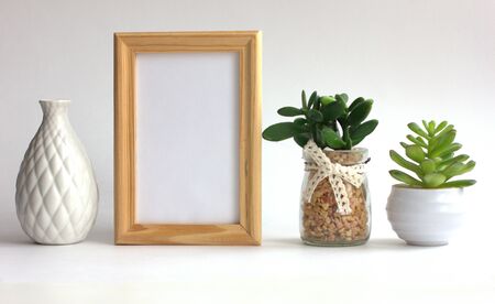 Photo frame mock up with ceramic vase, Scandinavian style