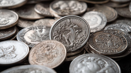 A detailed view of an assortment of vintage silver coins showcases their intricate designs and rich history, perfect for collectors and enthusiasts alike.
