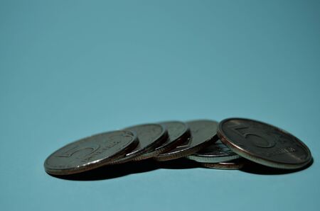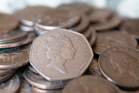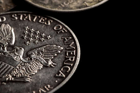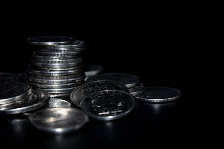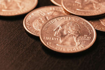 Coins of United States of America on a dark background. Selective focus. Toned.