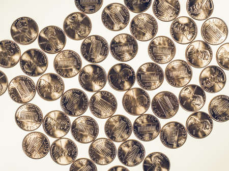 Vintage looking Dollar coins 1 cent wheat penny cent currency of the United States useful as a background