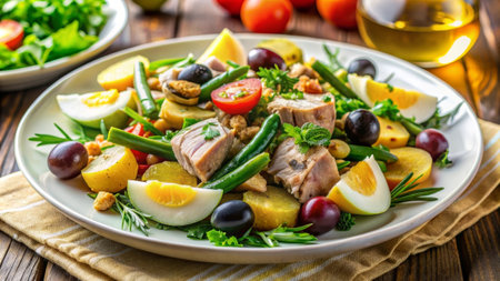 Nicoise salad with tuna, green beans, basil and a fresh vegetables