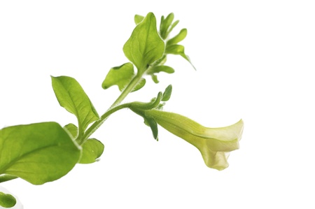 first flower of petunia pendula isolated over white background, design element for border of a page