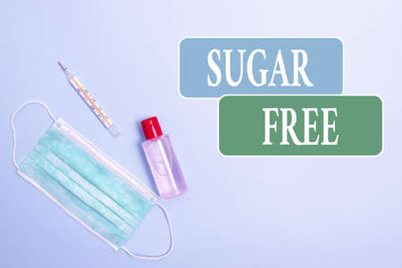 Writing note showing Sugar Free. Business concept for do not contain sugar and only have artificial sweetener instead Primary medical precautionary equipments for health care protection