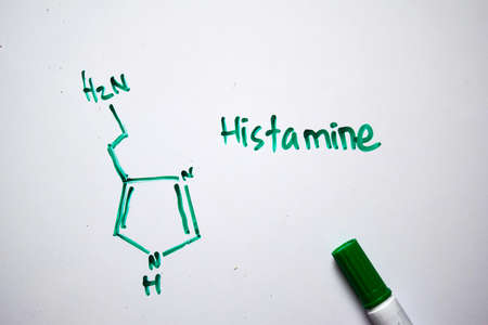 Histamine molecule written on the white board. Structural chemical formula. Education concept