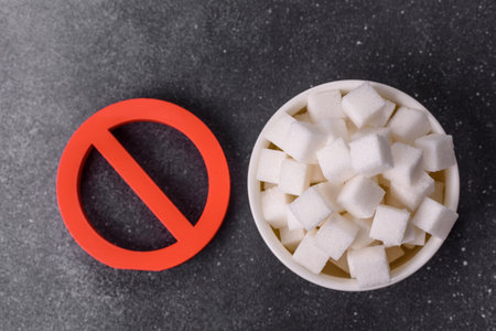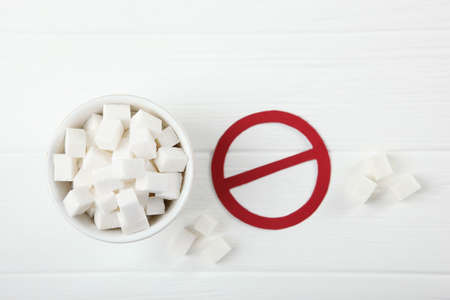 The sugar ban sign as a concept to stop the problem of diabetes and obesity, a call to diet. The sugar ban sign as a background for your design