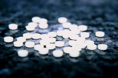 White pills in high contrast on a black counter