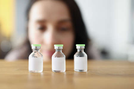 Woman looks at vaccine bottle and decides which one to choose