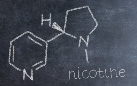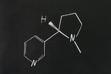 Nicotine molecule chemical structure on blackboard