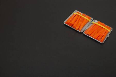 Cigarette case with carrot slices Concept of quitting smoking, healthy lifestyle