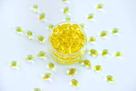 Vitamin D on a white background. selective focus. Nature.
