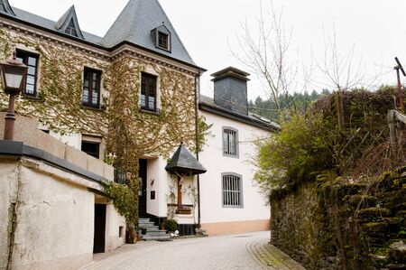 Monschau, Germany beautiful historic houses in a picturesque town on a cloudy day