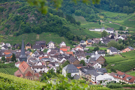 View of a beautiful village with mountains and vineyards in Germany, Mayschoss