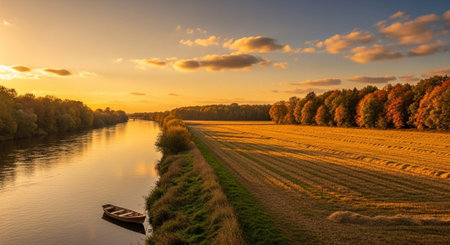 In the evenings with a beautiful sunset at the river de IJssel, a rain river in the province of Overijssel near the village of Wijhe