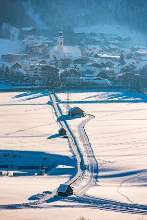 Beautiful winter landscape on small village in Stubai Valley,Austria