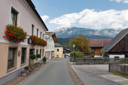 HAUS, AUSTRIA - SEPTEMBER 24, 2017: Rural Alpine street architecture. Haus village is a small winter resort located in Styria, Austria.