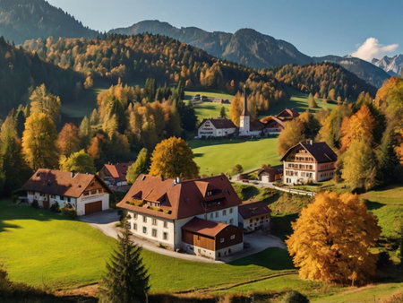 Autumn alpine landscape in Bavaria, Germany, Europe.