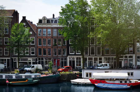 Singel canal in Amsterdam with houses. Amsterdam, Netherlands