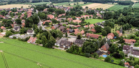 Ahnsen, Lower Saxony, Germany, shot from the air of a village