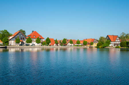 View of beautiful houses in the traditional German architecture style. Stade, Germany