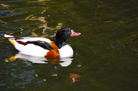 A common shelduck swimming in a pond