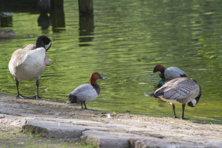 Ducks cleaning in small lake in Dusseldorf