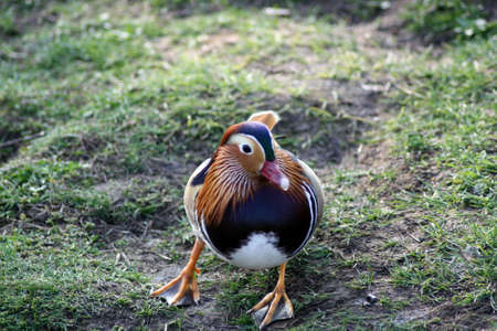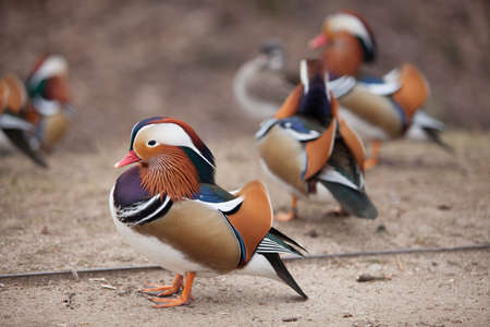 beautiful wild ducks walking in the park