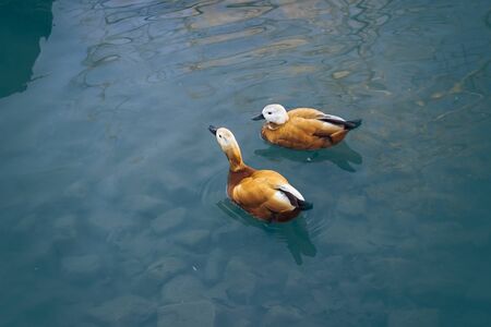 Two beautiful ducks swimming in the lake
