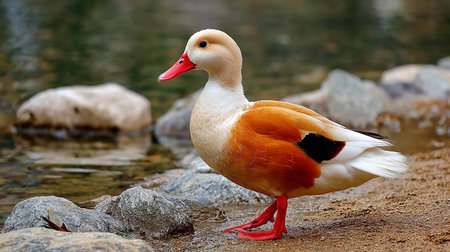 One beautiful shelduck with red beak on water surface