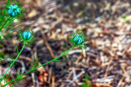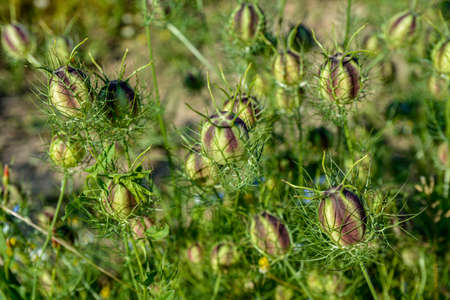 Beautiful nigella seeds in the garden.